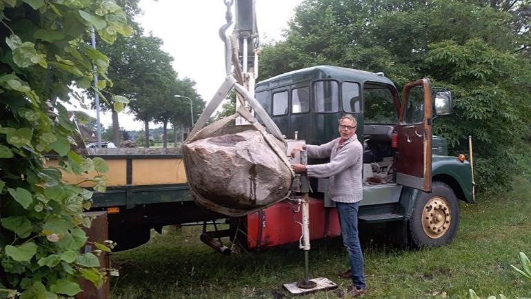 De gedenksteen wordt naar de steenhouwer gebracht (foto: RTV Drenthe)